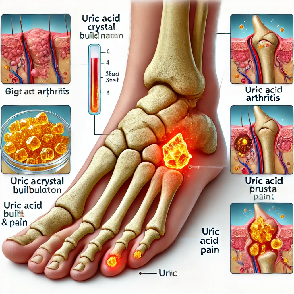 - 식습관 개선: 퓨린 높은 식품(내장, 붉은 고기, 술 등) 제한